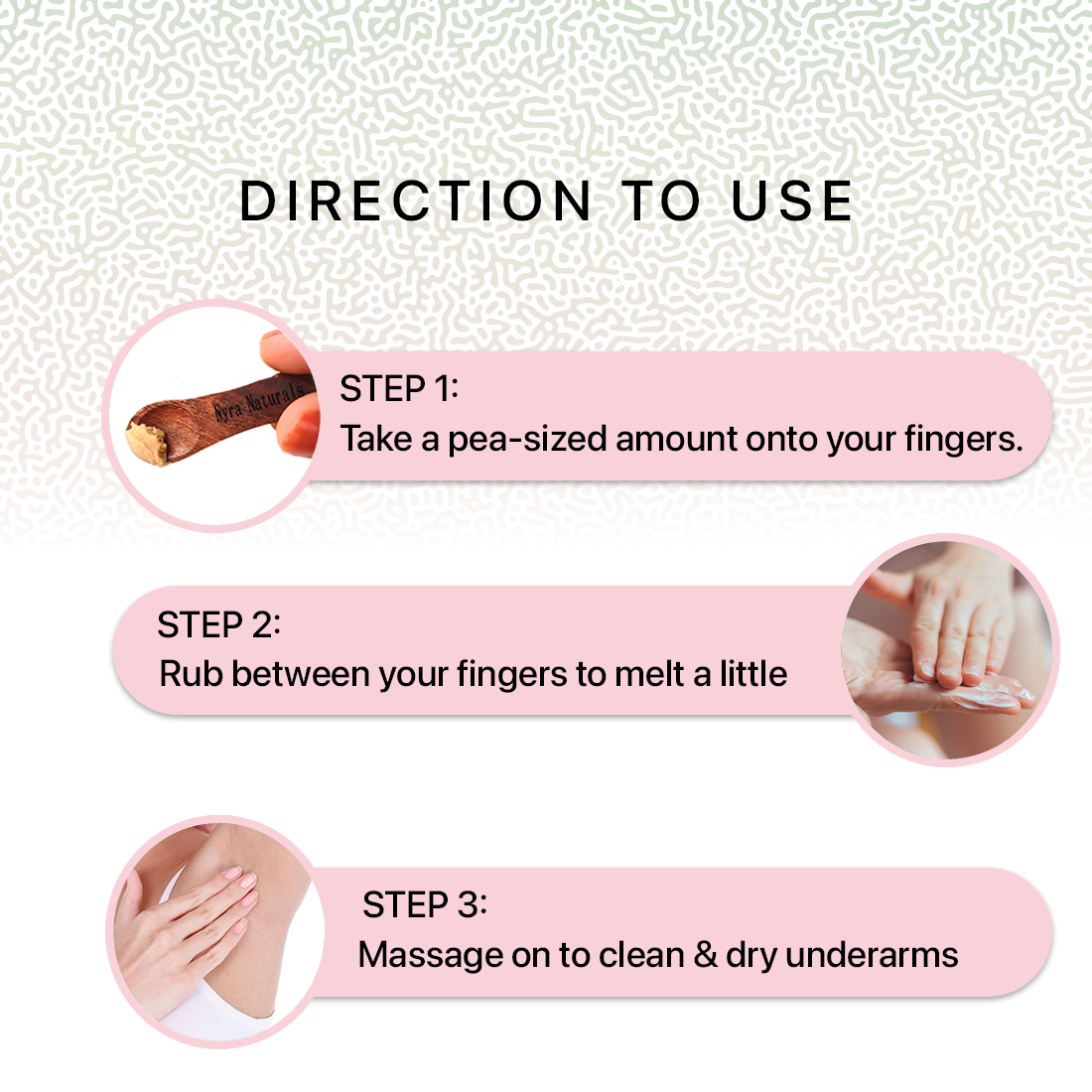 Apply: Massage into clean, dry underarms until fully absorbed.